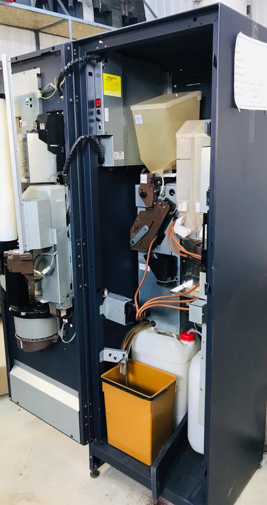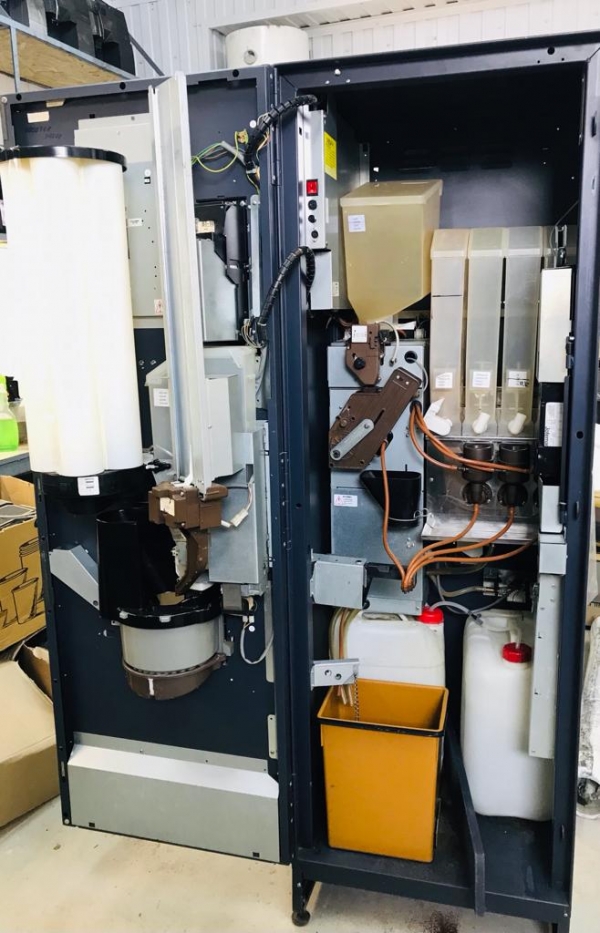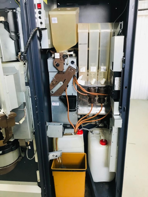 - сливки 2450 г., шоколад 3500 г., сахар 5000 г., кофе без кофеина 1500 г., стаканчики 500 шт., палочки для размешивания 500 шт., бойлер 370 мл. Стильный дизайн, Функция самоочистки, Температурный контроль бойлера Четыре уровня доступа программирования и аудита, Большие световые рекламные панели