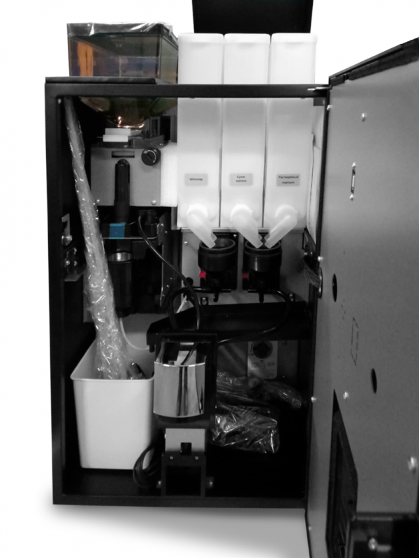Кофейный автомат готовит множество видов напитков из кофейных зёрен и подходящих сыпучих ингредиентов. Например: американо, капучино, шоколад с молоком, шоколадный латте, ванильный мока и т.д.